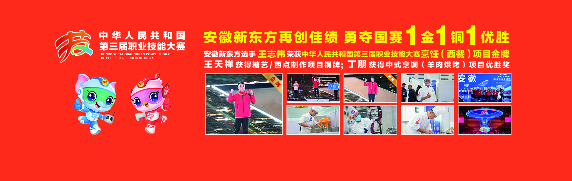 “金”喜连连!热烈祝贺安徽新东方烹饪高级技工学校,在中华人民共和国第三届职业技能大赛中勇夺1金、1铜、1优胜,闪耀国赛舞台!
